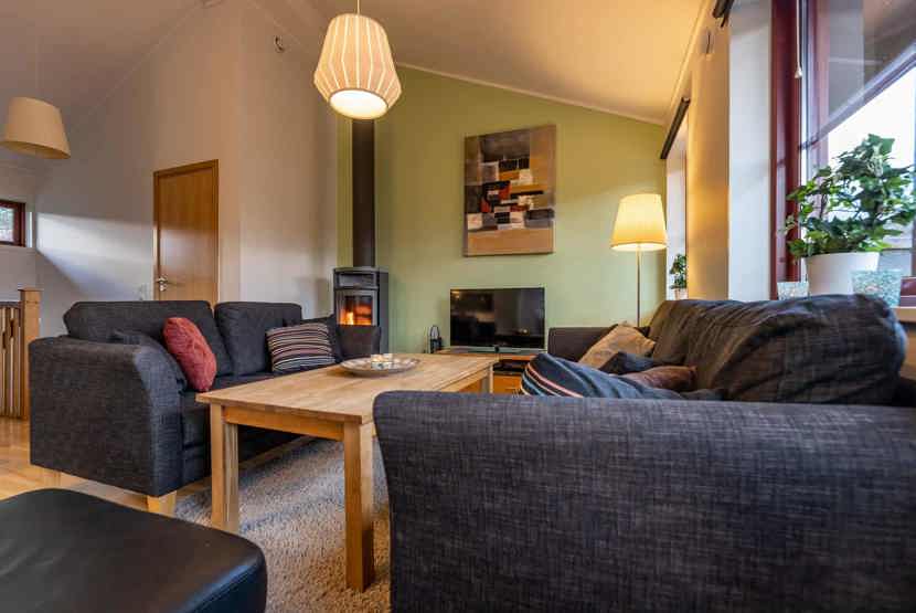 TV, brændeovn (brænde indgår ikke), tørreskab, vaskemaskine, tørretumbler, rum til skiudstyr, balkon, udtag til motorvarmer til bilen forefindes. Kræver specielt stik i bilen, adgang til elbilopladere med type 2 stik mod betaling.