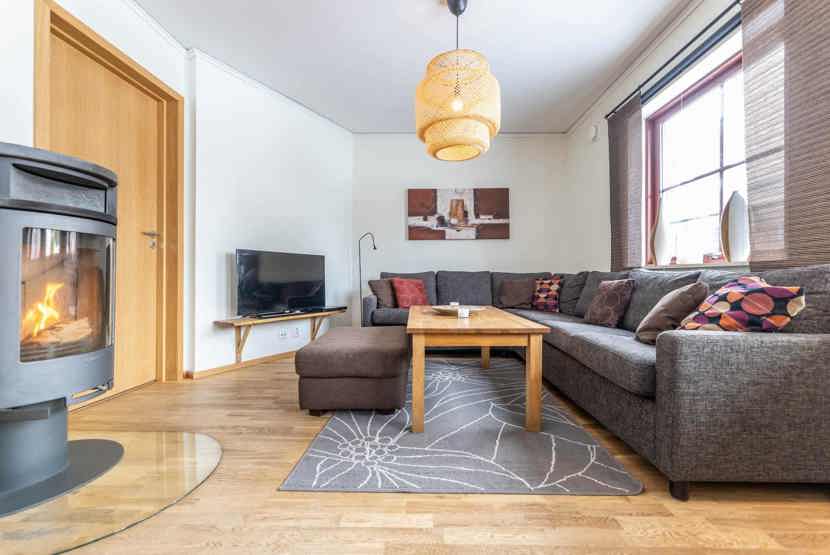 TV, brændeovn (brænde indgår ikke), tørreskab, vaskemaskine, tørretumbler, 1 højstol, 1 barneseng, rum til skiudstyr, altan (skovles ikke), adgang til elbilopladere med type 2 stik mod betaling.