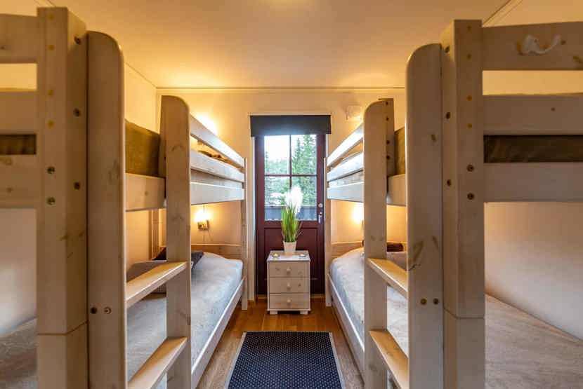 Soveværelse-1= 1 dobbeltseng 160 cm bred. Soveværelse-2= 2 køjesenge.