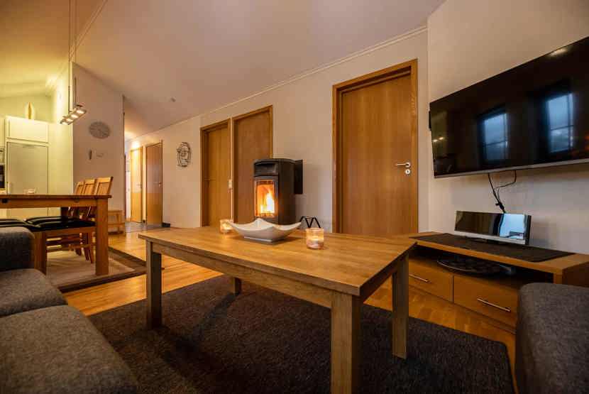 TV, brændeovn (brænde indgår ikke), tørreskab, vaskemaskine, tørretumbler, balkon, rum til skiudstyr, adgang til elbilopladere med type 2 stik mod betaling.