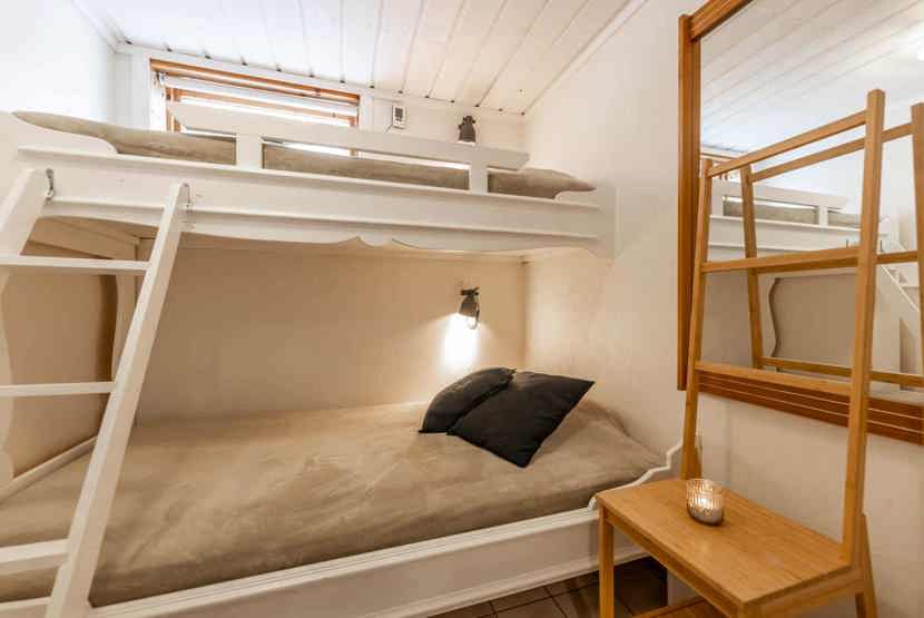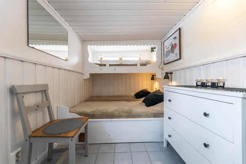 Soveværelse-1= 1 køjeseng med 180 cm bred underkøje . Soveværelse-2= 1 køjeseng med 120 cm bred underkøje .