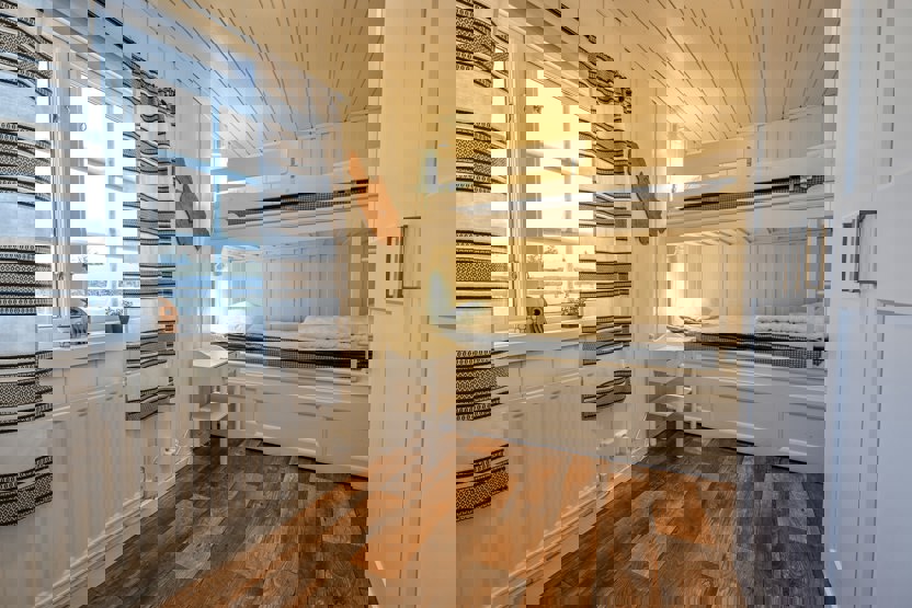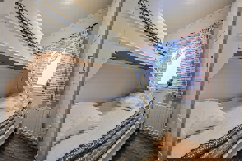 Soveværelse-1= 1 køyeseng med 120 cm bred underkøye og 90 cm bred overkøye. Soveværelse-2= 1 køjeseng. Soveværelse-3= 1 køjeseng.