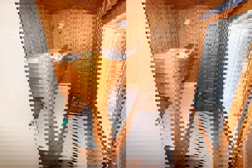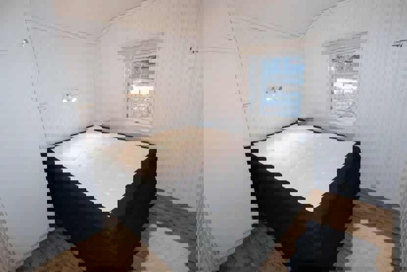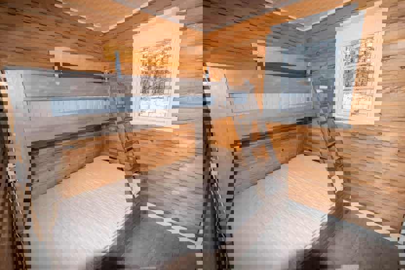 Soveværelse-1= 1 dobbeltseng 160 cm bred. Soveværelse-2= 1 køjeseng. Soveværelse-3= 1 køjeseng. Soveværelse-4= 1 køyeseng med 140 cm bred underkøye og 90 cm bred overkøye.
