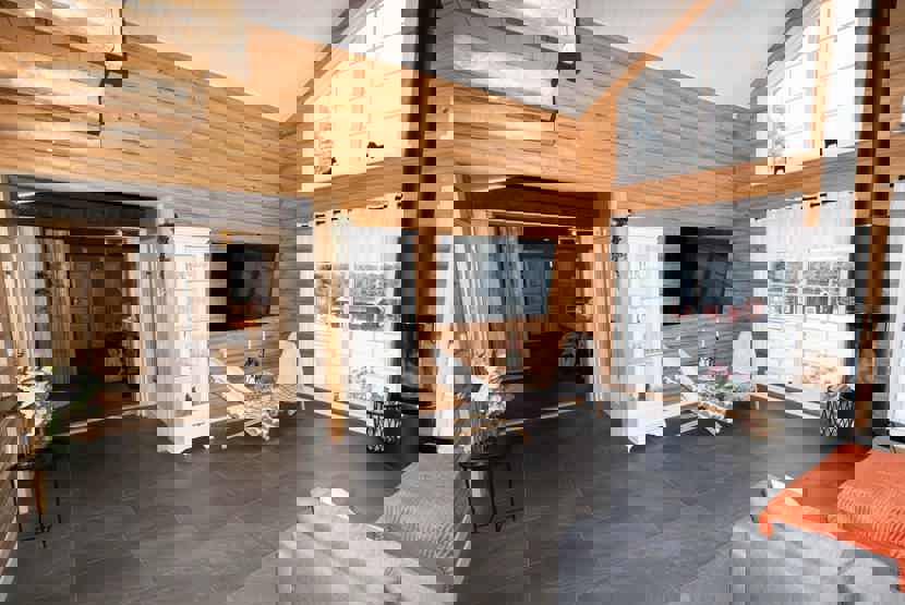 TV, brændeovn (brænde indgår ikke), tørreskab, altan (skovles ikke), havem¢bler, 1 parkeringsplads, udtag til motorvarmer til bilen forefindes. Kræver specielt stik i bilen.