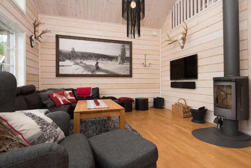 TV, tørreskab, vaskemaskine, brændeovn (brænde indgår ikke), rum til skiudstyr, altan (skovles ikke), 2 parkeringspladser.