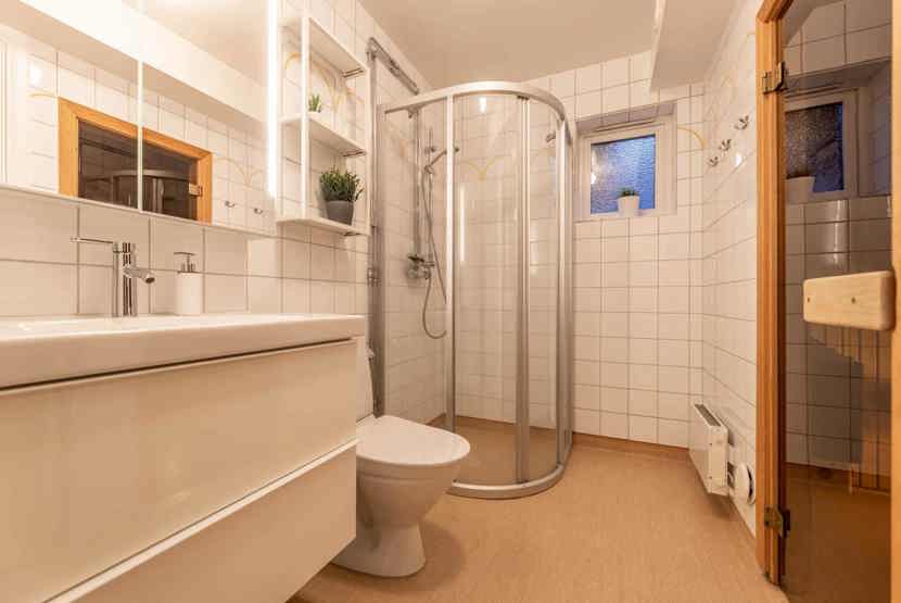 Badeværelset-1 = bruse/wc. Badeværelset-2 = bruse/wc/sauna.