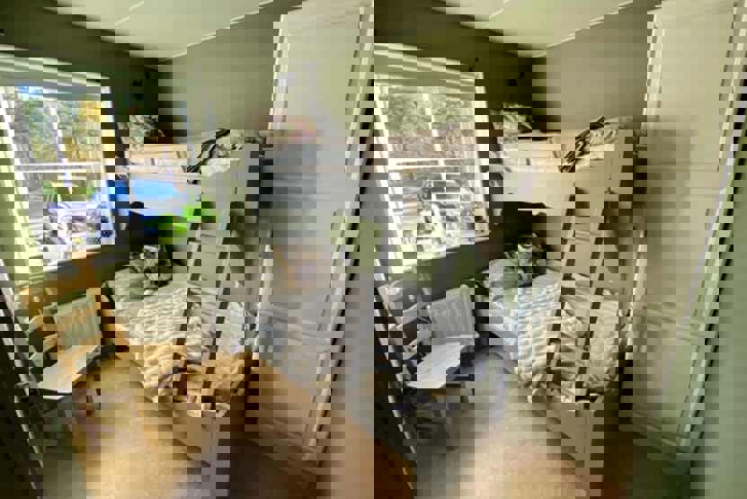 Soveværelse-1= 1 dobbeltseng. Soveværelse-2= 1 køjeseng. Soveværelse-3= 2 køjesenge.