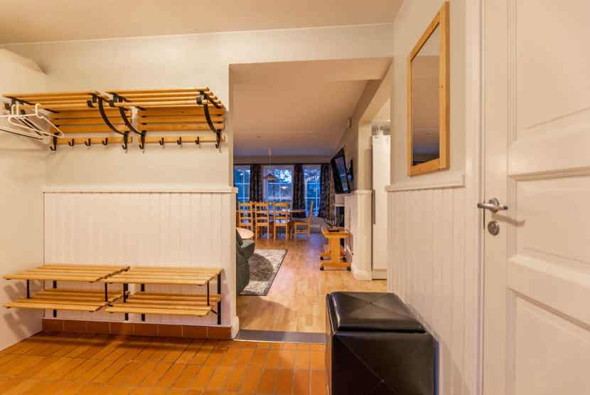 Opholdsstue med køkkenafdeling. TV, tørreskab, rum til skiudstyr, altan (skovles ikke).