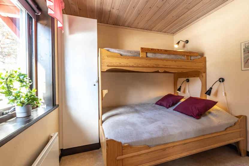 Soveværelse-1= 2 køjesenge. Soveværelse-2= 1 køjeseng med 140 cm bred underkøje .