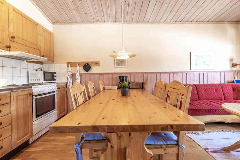 Opholdsstue med køkkenafdeling. TV, tørreskab, rum til skiudstyr, balkon.