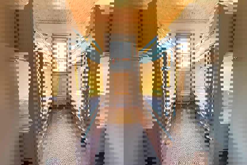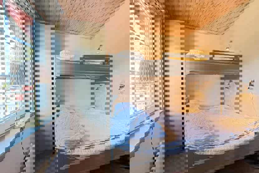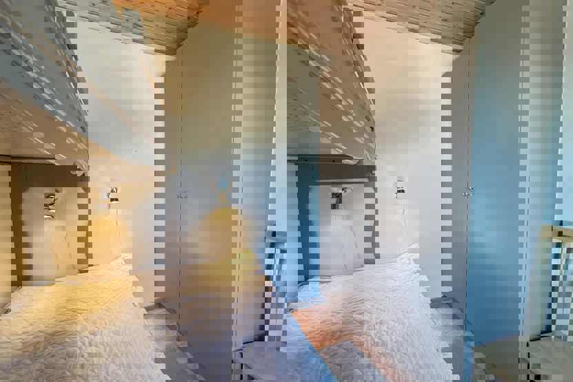 Soveværelse-1= 2 køjesenge. Soveværelse-2= 1 køjeseng med 140 cm bred underkøje .