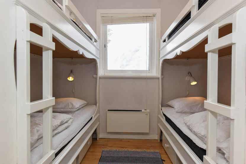 Soveværelse-1= 1 dobbeltseng 160 cm bred. Soveværelse-2= 2 køjesenge.