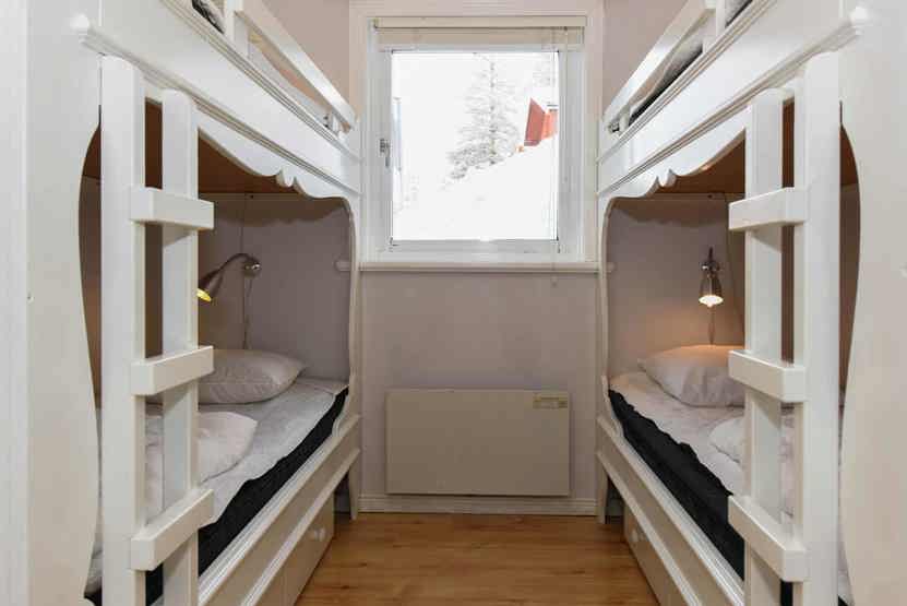 Soveværelse-1= 1 dobbeltseng 160 cm bred. Soveværelse-2= 2 køjesenge.