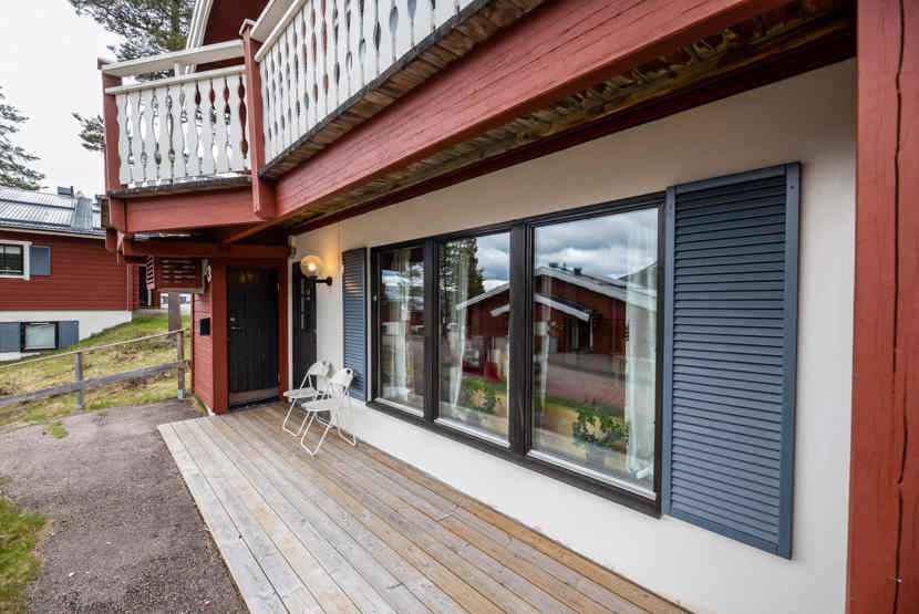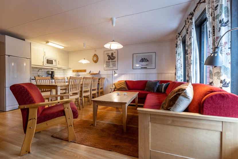 Röda Byn ligger i Tandådalen. Stuelejlighed, 6+1 sengepladser, 50 m², alrum med køkkenafdeling, 2 soveværelser, 1 bruser, 1 WC, sauna.