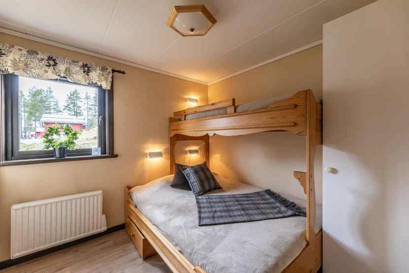 Soveværelse-1= 2 køjesenge. Soveværelse-2= 1 køjeseng med 140 cm bred underkøje .