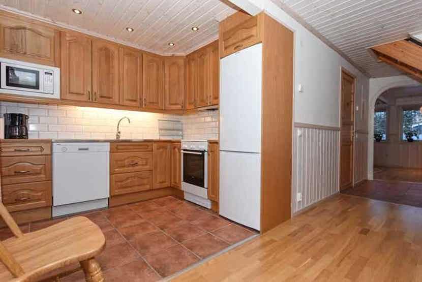 Køkkenet indeholder: keramiske kogeplader med ovn, køleskab, frys, opvaskemaskine, microovn.