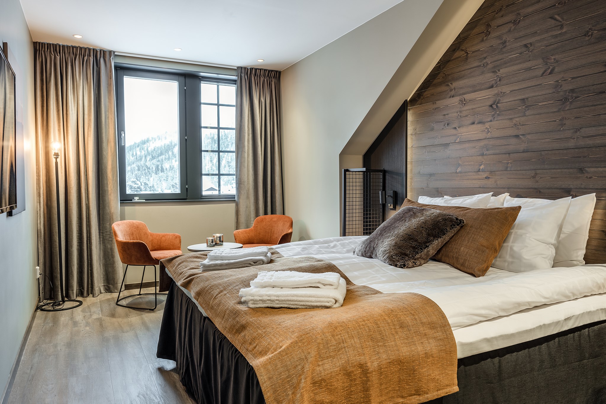 Hotelværelse til to personer med udsigt over skibakkerne. Morgenmad, opredte senge og daglig rengøring er inkluderet i prisen. SkiStar Lodge Hundfjället ligger centralt midt på Hundfjällstorget, blot 10 minutters kørsel fra Scandinavian Mountains Airport. SkiStar Lodge Hundfjället har restauranter, loungebar,SkiStarshop og afslapningsområde med sauna og fitnesscenter.