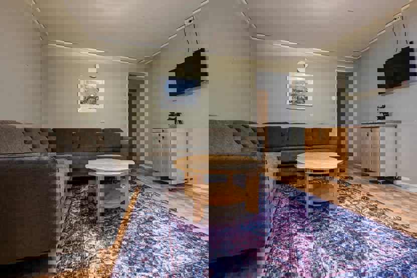 Opholdsstue med køkkenafdeling. TV, tørreskab, rum til skiudstyr, 1 parkeringsplads.