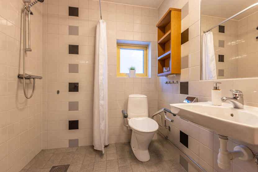 Badeværelset-1 = bruse/wc/sauna. Badeværelset-2 = bruse/wc.