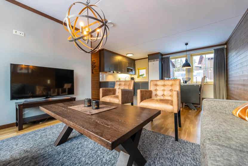 TV, tørreskab, vaskemaskine, altan (skovles ikke), rum til skiudstyr, 2 parkeringspladser, adgang til fælles elbilopladere med type 2 stik mod betaling.