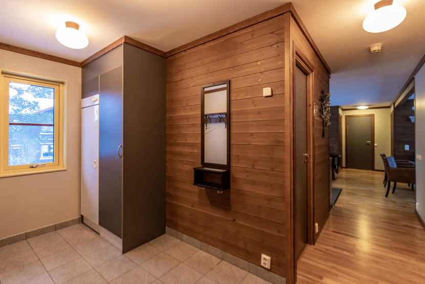 Opholdsstue med køkkenafdeling. TV, tørreskab, vaskemaskine, rum til skiudstyr, 2 parkeringspladser, adgang til fælles elbilopladere med type 2 stik mod betaling.