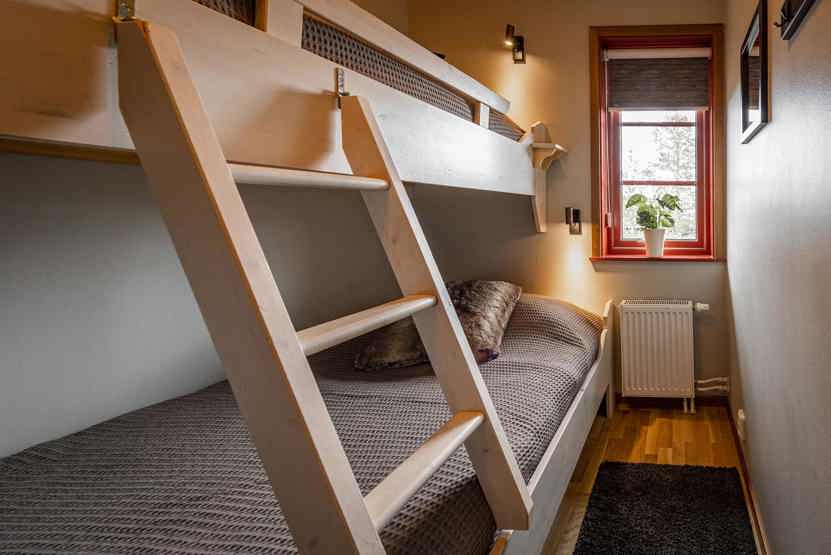 Soveværelse-1= 1 dobbeltseng. Soveværelse-2= 1 køjeseng med 120 cm bred underkøje .