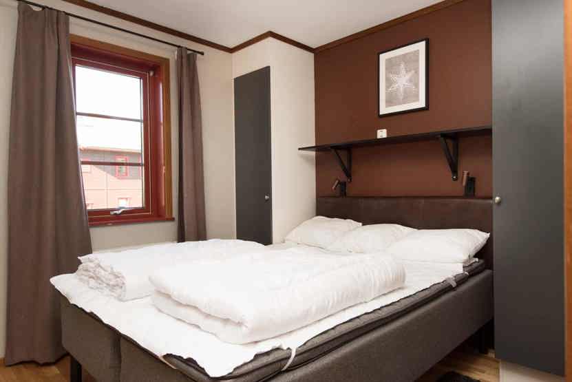 Soveværelse-1= 1 dobbeltseng. Soveværelse-2= 1 køjeseng med 120 cm bred underkøje .