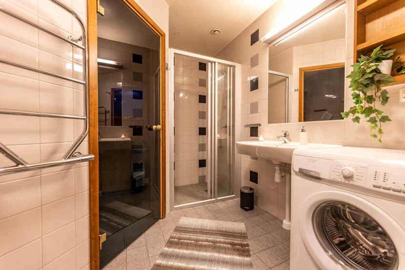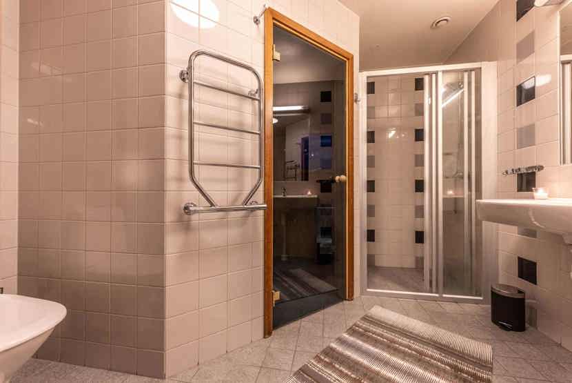 Badeværelset-1 = bruse/wc/sauna. Badeværelset-2 = bruse/wc.