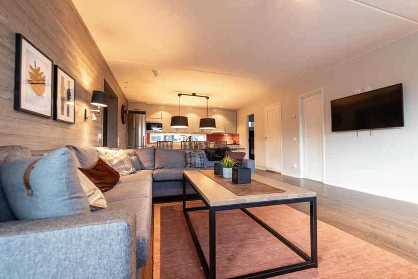 Opholdsstue med køkkenafdeling. TV, brændeovn (brænde indgår ikke), tørreskab, balkon, rum til skiudstyr, elevator findes i huset, adgang til vaskerum.