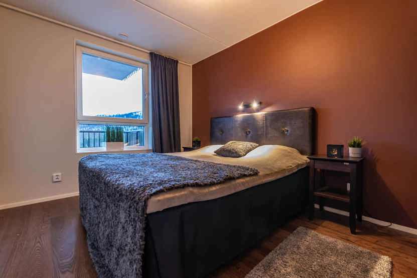 Opholdsstue med køkkenafdeling. TV, brændeovn (brænde indgår ikke), tørreskab, balkon, rum til skiudstyr, elevator findes i huset, adgang til vaskerum.