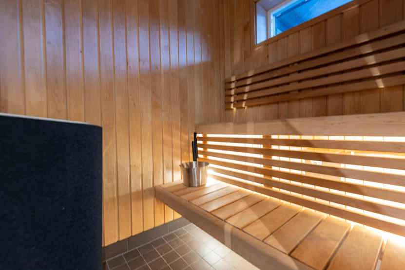 Badeværelset-1 = bruse/wc/sauna. Badeværelset-2 = bruse/wc/håndklædetørrer.