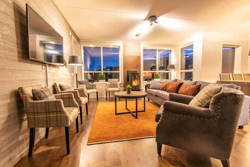 Opholdsstue med køkkenafdeling. TV, brændeovn (brænde indgår ikke), tørreskab, balkon, rum til skiudstyr, elevator findes i huset, adgang til vaskerum.
