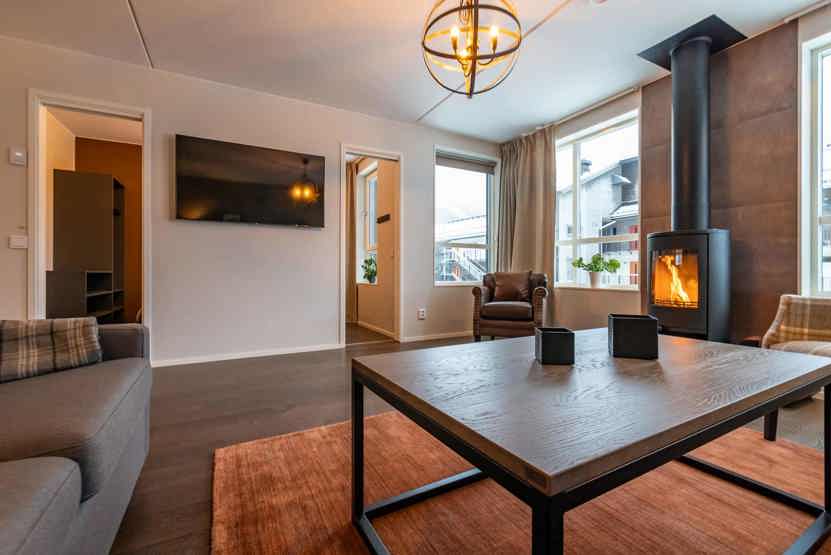 TV, brændeovn (brænde indgår ikke), tørreskab, strygejern og strygebræt, balkon, rum til skiudstyr, elevator findes i huset, adgang til vaskerum.