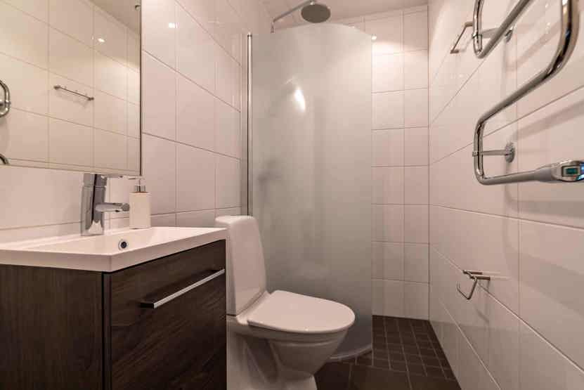 Badeværelset-1 = bruse/wc/sauna. Badeværelset-2 = bruse/wc/håndklædetørrer.