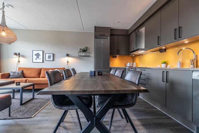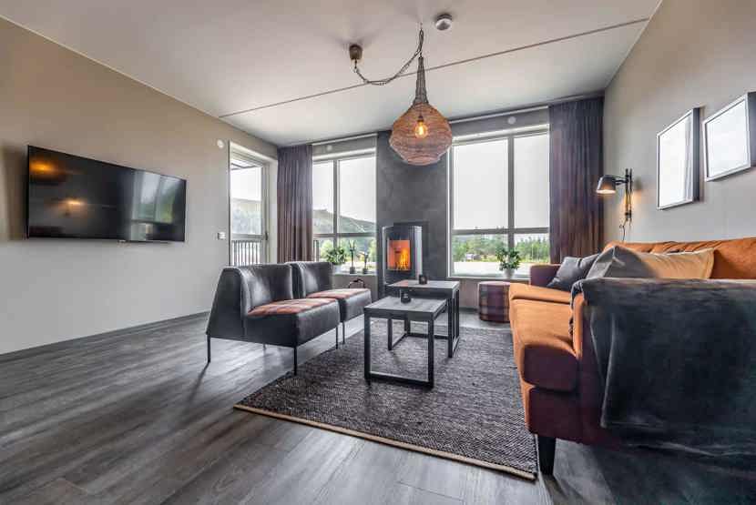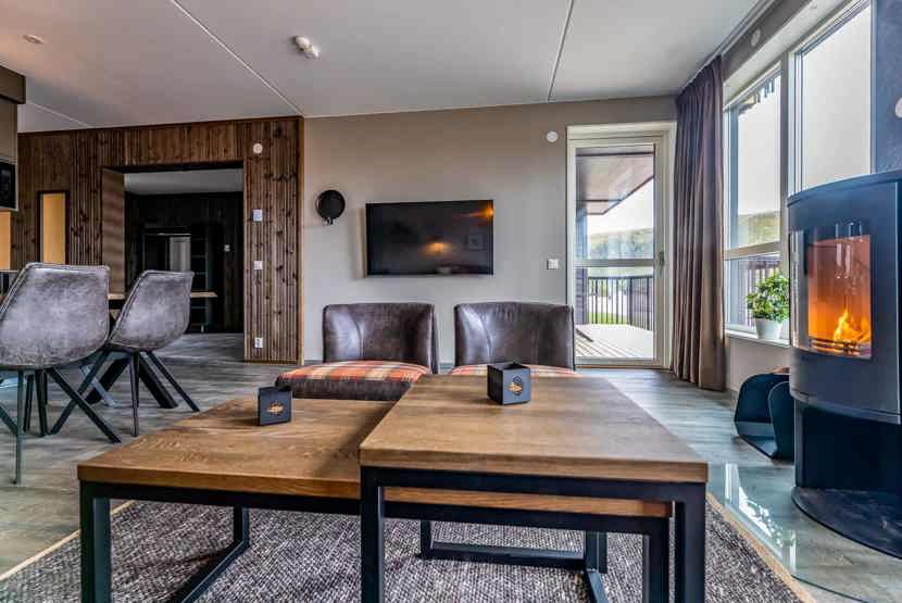 Opholdsstue med køkkenafdeling. TV, brændeovn (brænde indgår ikke), tørreskab, altan (skovles ikke), rum til skiudstyr, 1 parkeringsplads, adgang til fælles elbilopladere med type 2 stik mod betaling.