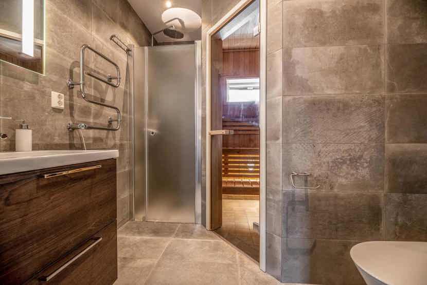 Badeværelset-1 = bruse/wc/sauna. Badeværelset-2 = bruse/wc.