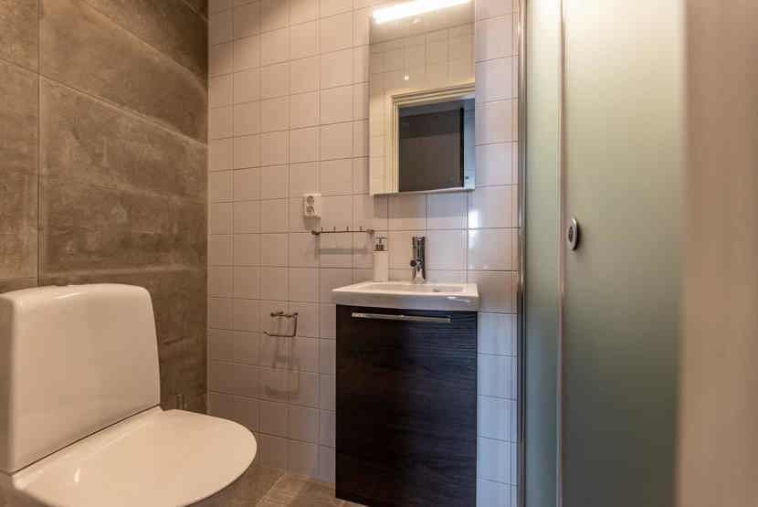 Badeværelset-1 = bruse/wc/sauna. Badeværelset-2 = bruse/wc.