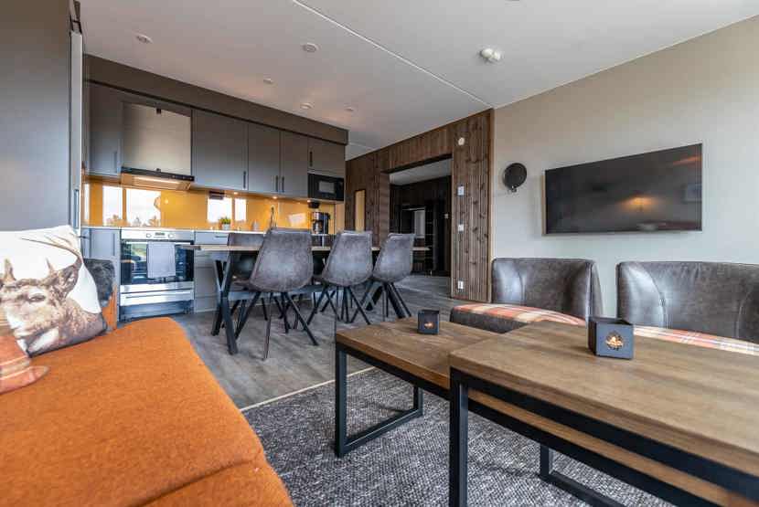 Opholdsstue med køkkenafdeling. TV, brændeovn (brænde indgår ikke), tørreskab, altan (skovles ikke), rum til skiudstyr, 1 parkeringsplads, adgang til fælles elbilopladere med type 2 stik mod betaling.