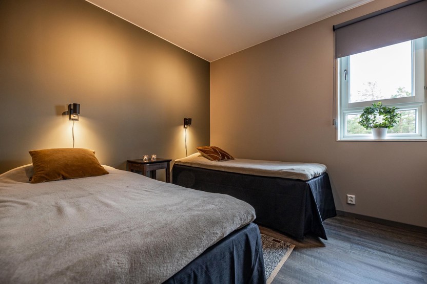 Soveværelse-1= 1 dobbeltseng 180 cm bred. Soveværelse-2= 2 enkeltsenge 90 cm bred. Soveværelse-3= 1 køjeseng.