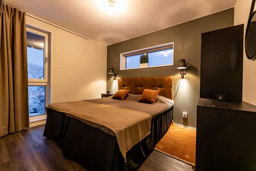 Soveværelse-1= 1 dobbeltseng. Soveværelse-2= 1 køyeseng med 120 cm bred underkøye og 80 cm bred overkøye.