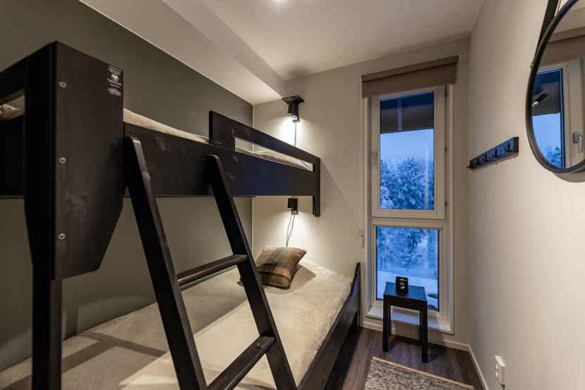 Soveværelse-1= 1 dobbeltseng. Soveværelse-2= 1 køyeseng med 120 cm bred underkøye og 80 cm bred overkøye.