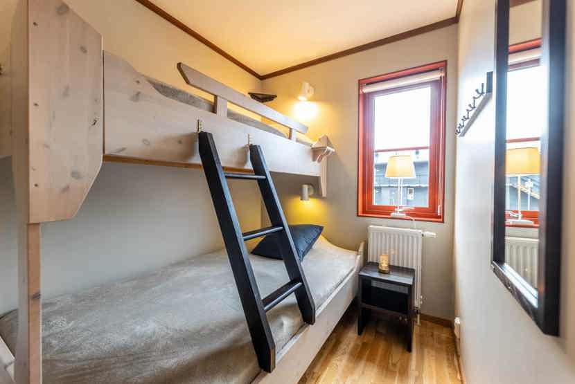 Soveværelse-1= 1 dobbeltseng. Soveværelse-2= 1 køjeseng med 120 cm bred underkøje .