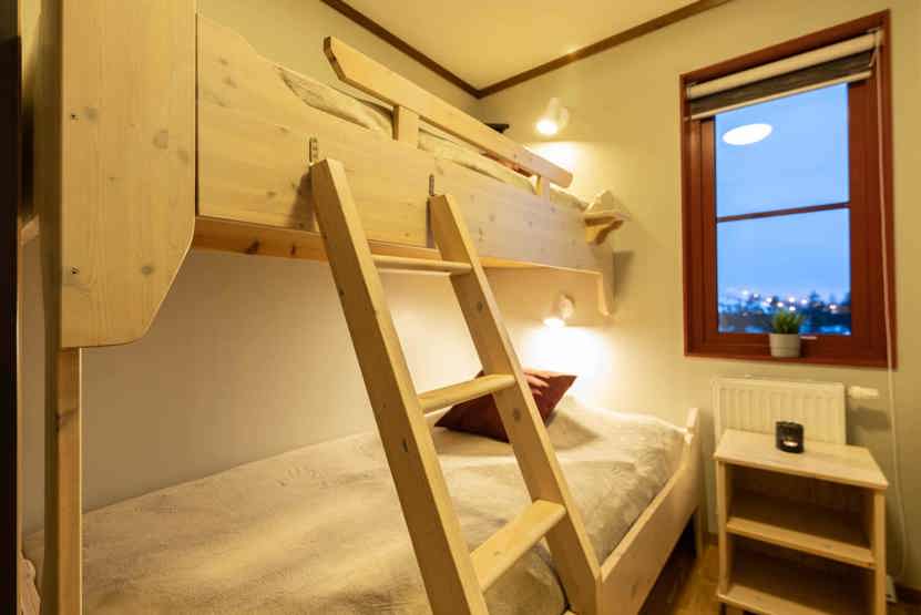 Soveværelse-1= 1 dobbeltseng. Soveværelse-2= 1 køjeseng med 120 cm bred underkøje .