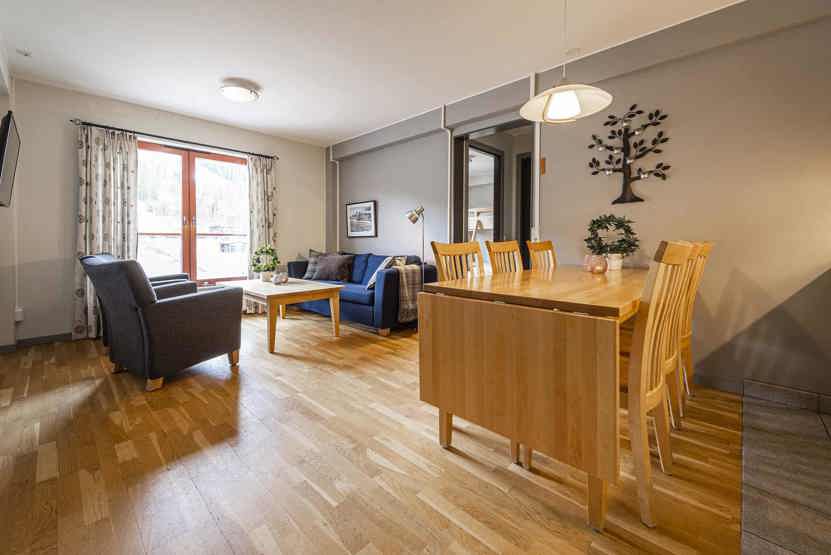 Sportvåning ligger i Tandådalen. Lejlighed, 8 sengepladser, 60 m², alrum med køkkenafdeling, 3 soveværelser, 2 brusere, 2 WC.
