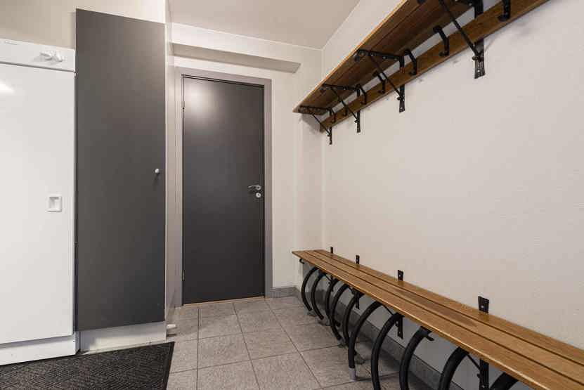 Opholdsstue med køkkenafdeling. TV, tørreskab, rum til skiudstyr.