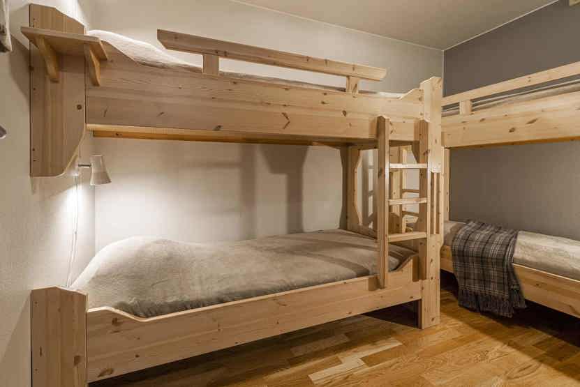 Soveværelse-1= 1 dobbeltseng. Soveværelse-2= 1 køjeseng med 120 cm bred underkøje . Soveværelse-3= 2 køjesenge.
