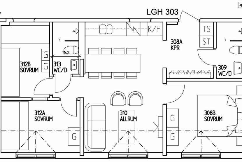 Soveværelse-1= 1 dobbeltseng. Soveværelse-2= 1 køjeseng med 120 cm bred underkøje . Soveværelse-3= 2 køjesenge.