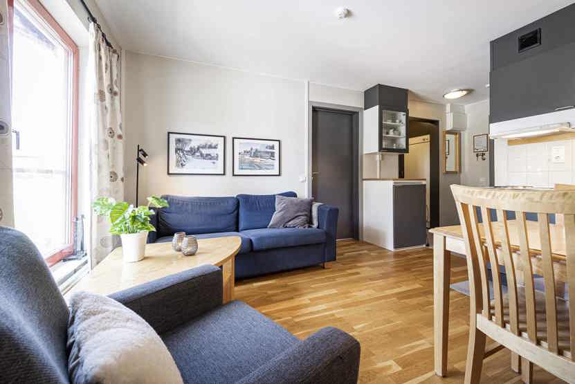 Opholdsstue med køkkenafdeling.