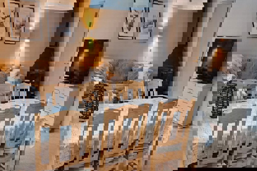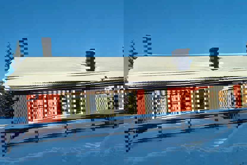 TV, brændeovn (brænde indgår ikke), tørreskab, rum til skiudstyr, altan (skovles ikke).