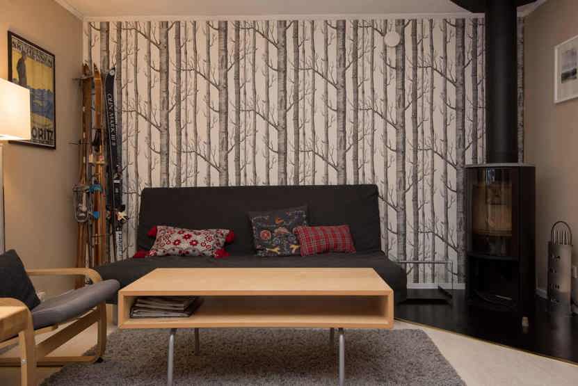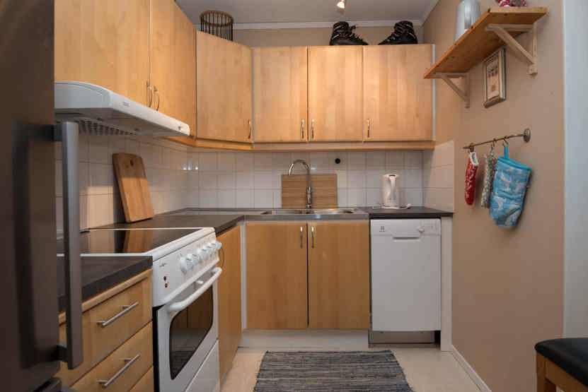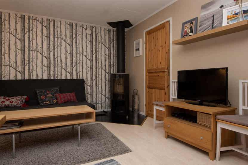 TV, brændeovn (brænde indgår ikke), tørreskab, vaskemaskine, 1 barneseng, 1 højstol, rum til skiudstyr, altan (skovles ikke).